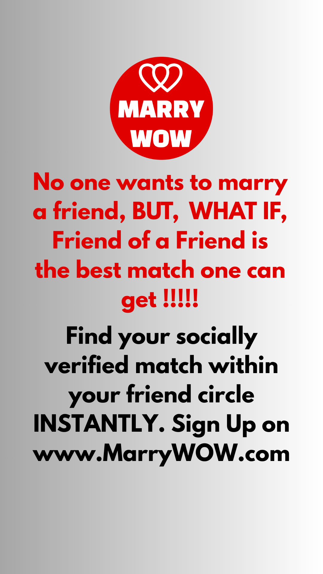 MarryWOW connects you with eligible singles from within your trusted social circles and beyond through a specially curated, intelligent matchmaking technology. Find good prospects in known circle with ease.