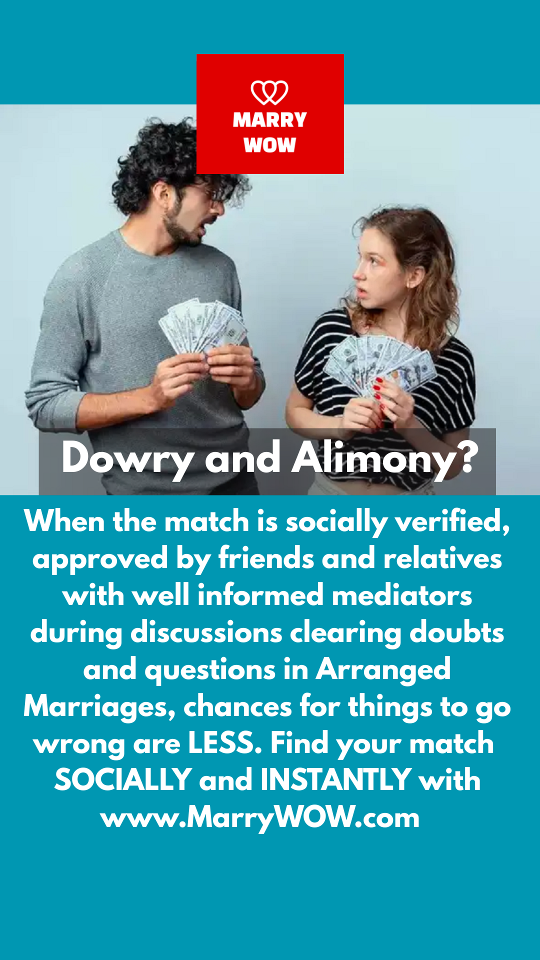 MarryWOW Says : NO DOWRY | NO ALIMONY When the match is socially verified, approved by friends and relatives with well informed mediators during ...