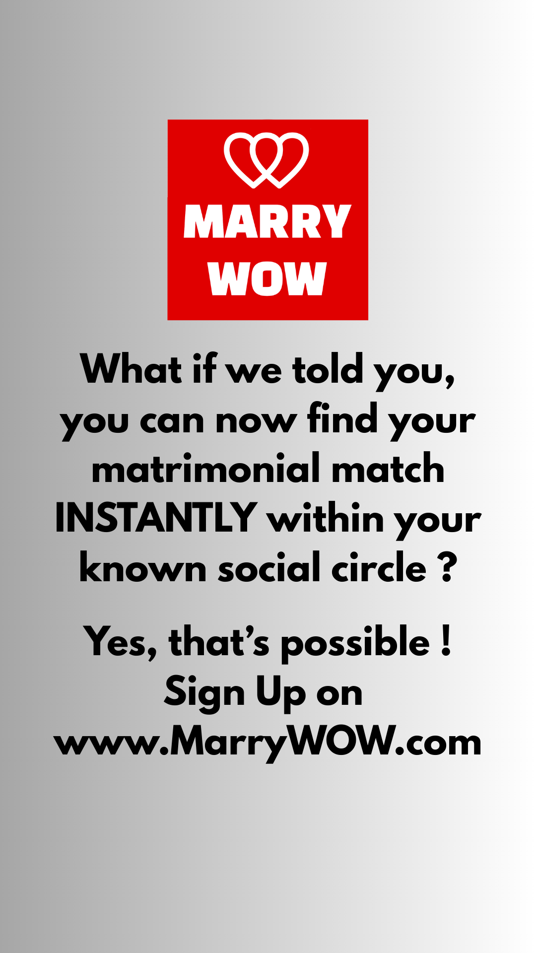 What if we told you, you can now find your matrimonial match INSTANTLY within your known social circle ? Yes, that’s possible ! Sign Up on www.M ...