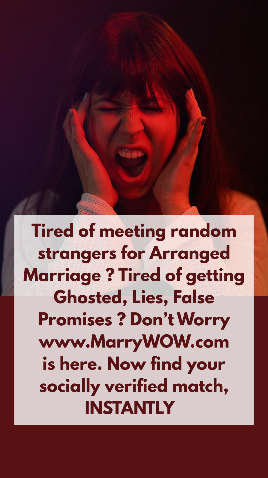 Tired of meeting random strangers for Arranged Marriage ? Tired of getting ghosted, Lies, False Promises ? Don’t Worry ! www.MarryWOW.com is here ...